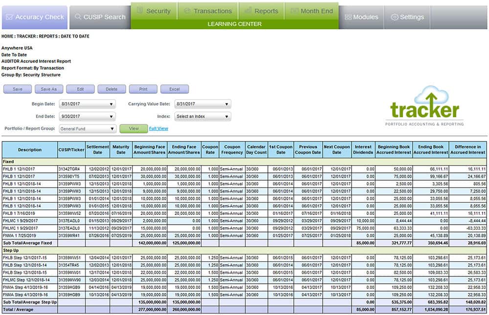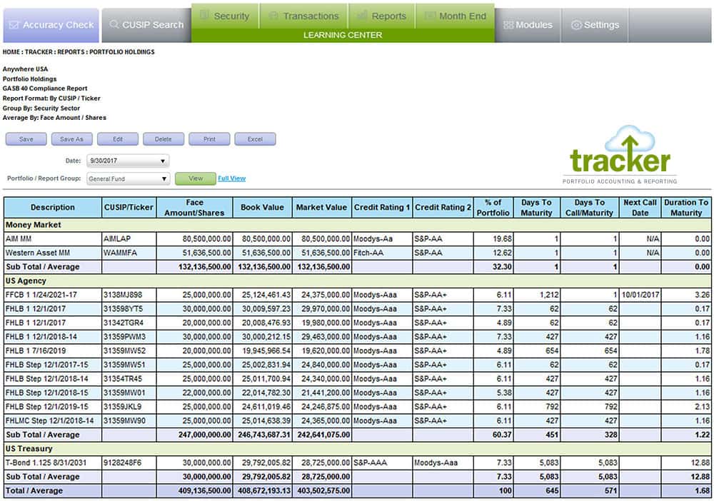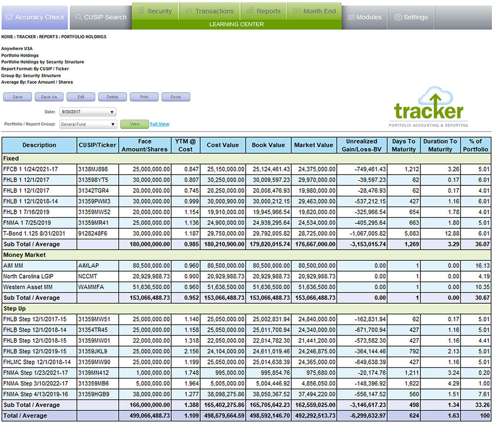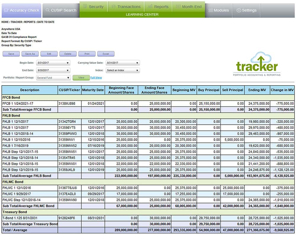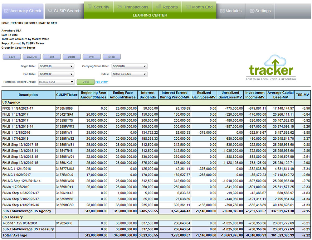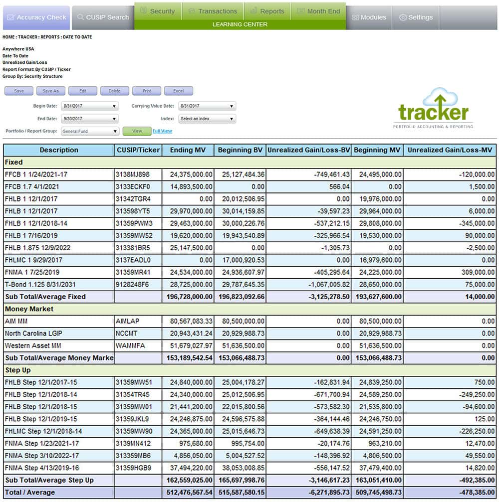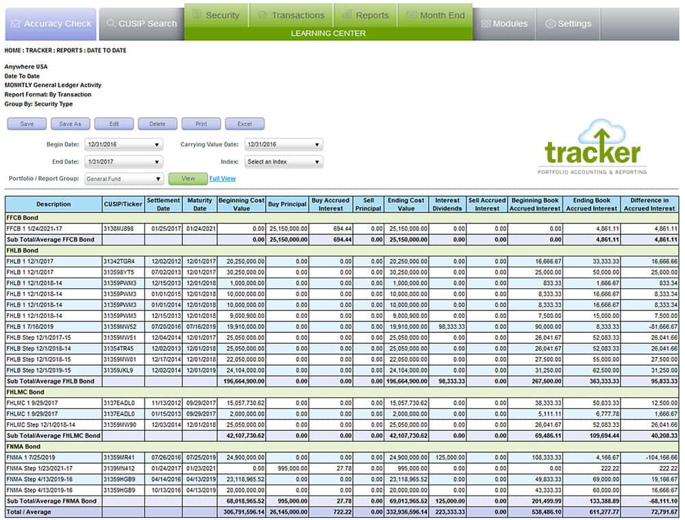 Tracker is an easy to use, web-based portfolio accounting and reporting investment tool for institutional investors. We simplify the labor intensive and time consuming task of investment management.